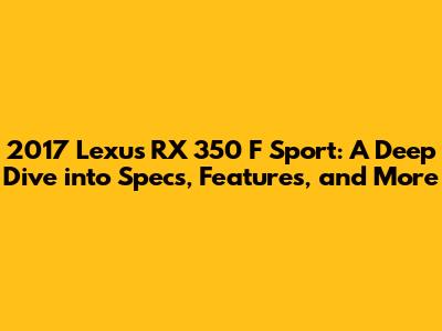 Hey there, car enthusiasts! Let's dive headfirst into the world of the 2017 Lexus RX 350 F Sport. This SUV is more than just a pretty face; it's a blend of luxury, performance, and head-turning style. In this article, we'll peel back the layers and explore everything this beauty has to offer, from its engine specs to its interior goodies. So, buckle up, grab your favorite beverage, and let's get started. The RX 350 F Sport is a mid-size luxury SUV that hits the sweet spot for many drivers. It provides enough space for passengers and cargo while still being easy to maneuver and park. The 2017 model year brought a refreshed look and some exciting tech upgrades, making it a strong contender in its class. With its bold design, comfortable ride, and sporty handling, the 2017 Lexus RX 350 F Sport is designed to attract those who want a practical and luxurious vehicle that can handle both city streets and weekend getaways. Let's see what makes this car so special. We'll start with the heart of the beast, the engine, and then move on to the other important features that make the RX 350 F Sport stand out from the crowd. We'll also cover some of the available options and packages that can customize your ride, as well as a brief overview of the safety features. Whether you're considering buying one or you're simply curious about it, by the end of this article, you'll have a complete picture of the 2017 Lexus RX 350 F Sport.
