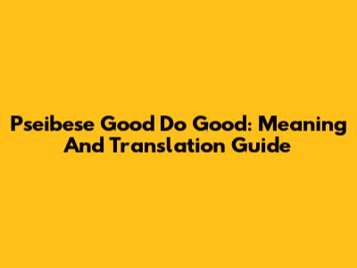 Pseibese Good Do Good: Meaning And Translation Guide