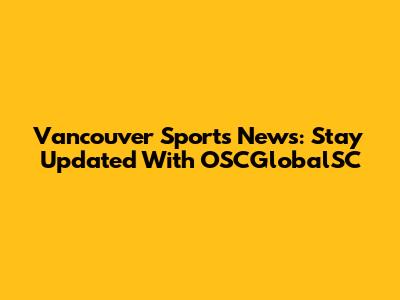 Vancouver Sports News: Stay Updated With OSCGlobalSC