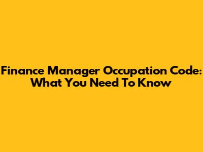 Finance Manager Occupation Code: What You Need To Know