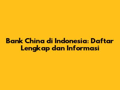 Hey guys! Penasaran bank-bank China apa saja yang beroperasi di Indonesia? Nah, pas banget! Di artikel ini, kita bakal bahas tuntas daftar lengkap bank China yang ada di Indonesia, lengkap dengan informasi penting yang perlu kamu tahu. Yuk, simak selengkapnya!