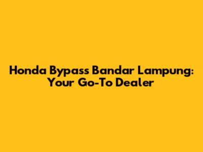 Honda Bypass Bandar Lampung: Your Go-To Dealer