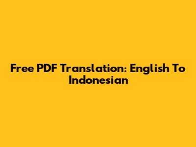 Free PDF Translation: English To Indonesian