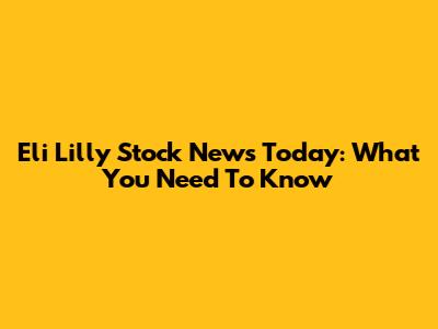 Eli Lilly Stock News Today: What You Need To Know