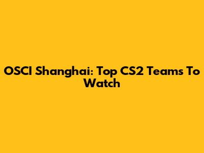 OSCI Shanghai: Top CS2 Teams To Watch