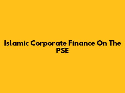 Islamic Corporate Finance On The PSE