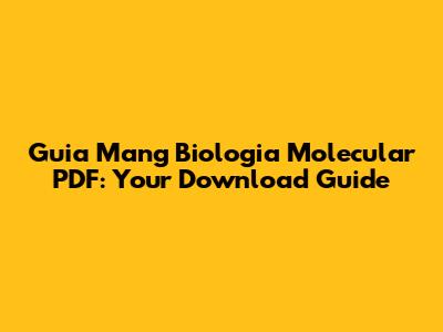 Guia Mang Biologia Molecular PDF: Your Download Guide
