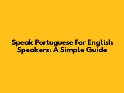 Speak Portuguese For English Speakers: A Simple Guide