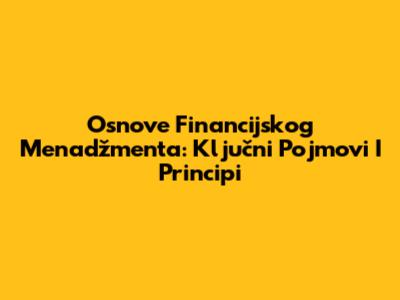Osnove Financijskog Menadžmenta: Ključni Pojmovi I Principi