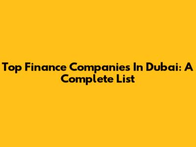 Top Finance Companies In Dubai: A Complete List