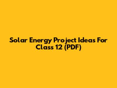 Solar Energy Project Ideas For Class 12 (PDF)