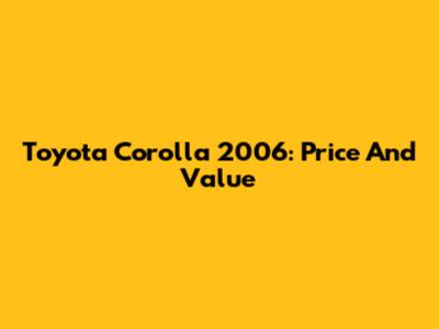 Toyota Corolla 2006: Price And Value