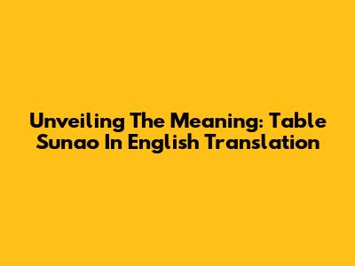 Unveiling The Meaning: Table Sunao In English Translation