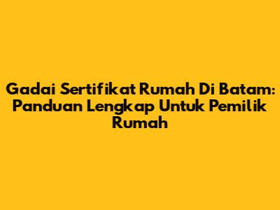 Gadai Sertifikat Rumah Di Batam: Panduan Lengkap Untuk Pemilik Rumah