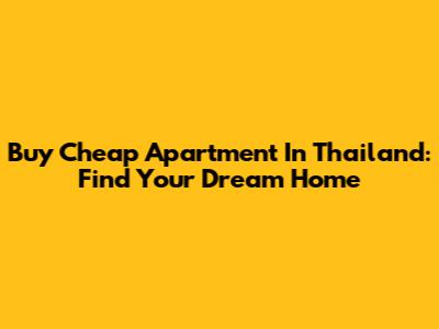Buy Cheap Apartment In Thailand: Find Your Dream Home