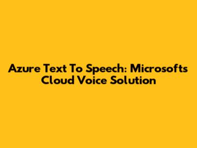 Azure Text To Speech: Microsoft's Cloud Voice Solution