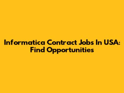 Informatica Contract Jobs In USA: Find Opportunities