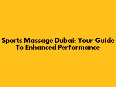 Sports Massage Dubai: Your Guide To Enhanced Performance