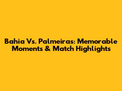 Bahia Vs. Palmeiras: Memorable Moments & Match Highlights