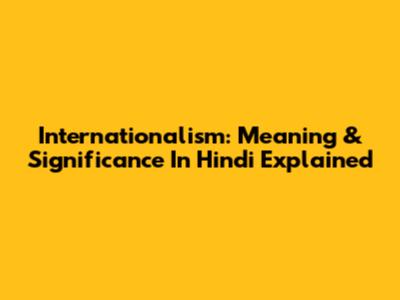 Internationalism: Meaning & Significance In Hindi Explained