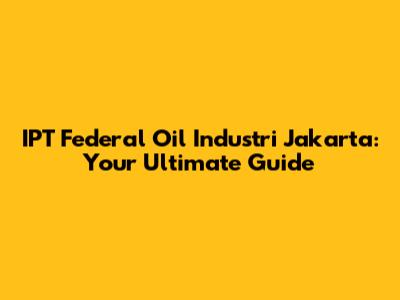 Hey guys! Ever heard of IPT Federal Oil Industri Jakarta? Well, if you're even remotely interested in the oil and gas industry, or perhaps you're a motor enthusiast, then you definitely should be! This comprehensive guide will walk you through everything you need to know about this key player in the Indonesian market. We'll delve into their history, products, impact, and what makes them tick. So, buckle up, because we're about to take a deep dive into the fascinating world of IPT Federal Oil Industri Jakarta! This article will be your go-to resource, providing you with all the essential information in a clear and engaging way. We'll explore the company's beginnings, its evolution, and the significant role it plays in Indonesia's economy and beyond. From their top-notch products to their market strategies, we'll leave no stone unturned. Get ready to become an expert on IPT Federal Oil Industri Jakarta! Let's get started, shall we?