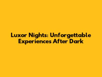 Luxor Nights: Unforgettable Experiences After Dark