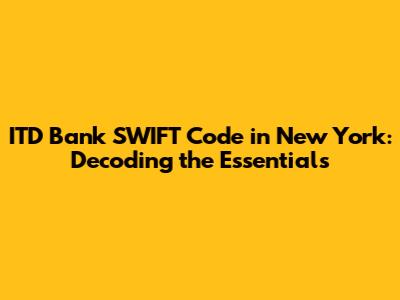 Hey guys! Ever found yourself scratching your head about international money transfers, especially when dealing with a bank like ITD Bank in the bustling city of New York? Well, you're not alone. Navigating the world of SWIFT codes can seem like a secret code, but it's really not that complicated once you break it down. Today, we're diving deep into the ITD Bank SWIFT code in New York, making sure you have all the essential info at your fingertips. We'll explore what a SWIFT code is, why it's crucial for international transactions, and how to find the right one for ITD Bank in the Big Apple. So, grab a coffee, settle in, and let's unravel this financial puzzle together! Understanding the SWIFT code for any bank is the first step in ensuring your money moves smoothly across borders. This code acts like a unique ID, helping banks identify and process international payments quickly and securely. Without it, your transaction might get delayed or, worse, lost in the shuffle. Specifically, when you're looking to transfer funds to or from an ITD Bank account in New York, you need the correct SWIFT code to make sure your money gets where it needs to go. This guide will provide you with the information you need, so you can confidently handle your international financial transactions. We'll cover everything from what a SWIFT code is made of to how you can verify its accuracy. Knowledge is power, and in the world of international banking, knowing your SWIFT code is a game-changer.