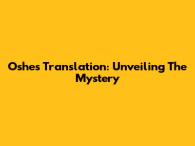 Oshe's Translation: Unveiling The Mystery
