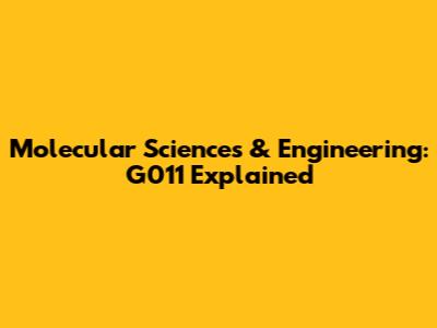 Molecular Sciences & Engineering: G011 Explained
