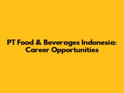 PT Food & Beverages Indonesia: Career Opportunities