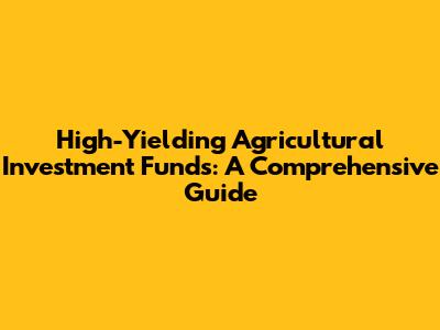 High-Yielding Agricultural Investment Funds: A Comprehensive Guide