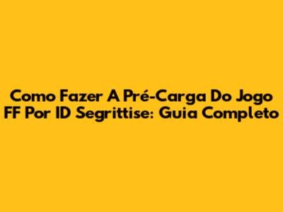 Como Fazer A Pré-Carga Do Jogo FF Por ID Segrittise: Guia Completo