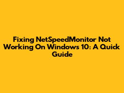 Fixing NetSpeedMonitor Not Working On Windows 10: A Quick Guide