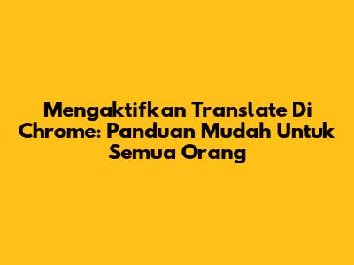 Mengaktifkan Translate Di Chrome: Panduan Mudah Untuk Semua Orang