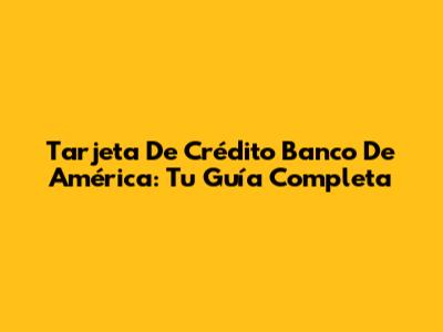 Tarjeta De Crédito Banco De América: Tu Guía Completa