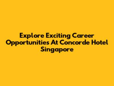 Explore Exciting Career Opportunities At Concorde Hotel Singapore