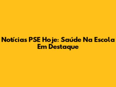 Notícias PSE Hoje: Saúde Na Escola Em Destaque