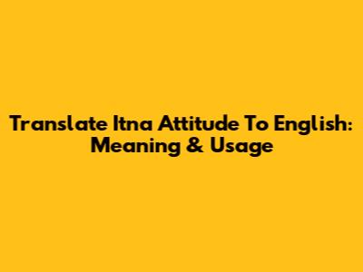 Translate 'Itna Attitude' To English: Meaning & Usage