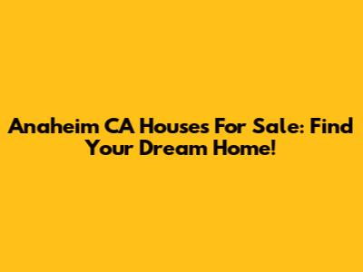 Anaheim CA Houses For Sale: Find Your Dream Home!