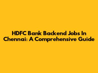 HDFC Bank Backend Jobs In Chennai: A Comprehensive Guide