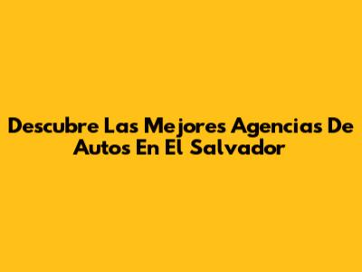 Descubre Las Mejores Agencias De Autos En El Salvador