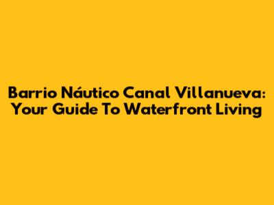 Barrio Náutico Canal Villanueva: Your Guide To Waterfront Living