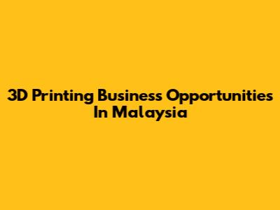3D Printing Business Opportunities In Malaysia