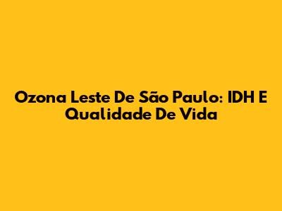 Ozona Leste De São Paulo: IDH E Qualidade De Vida