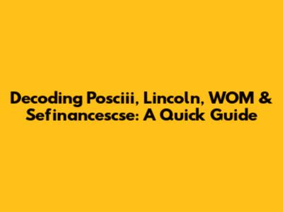 Decoding Posciii, Lincoln, WOM & Sefinancescse: A Quick Guide