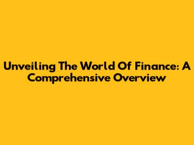 Unveiling The World Of Finance: A Comprehensive Overview