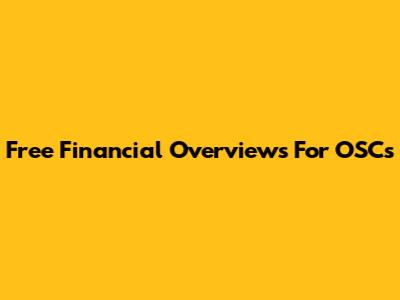 Free Financial Overviews For OSCs
